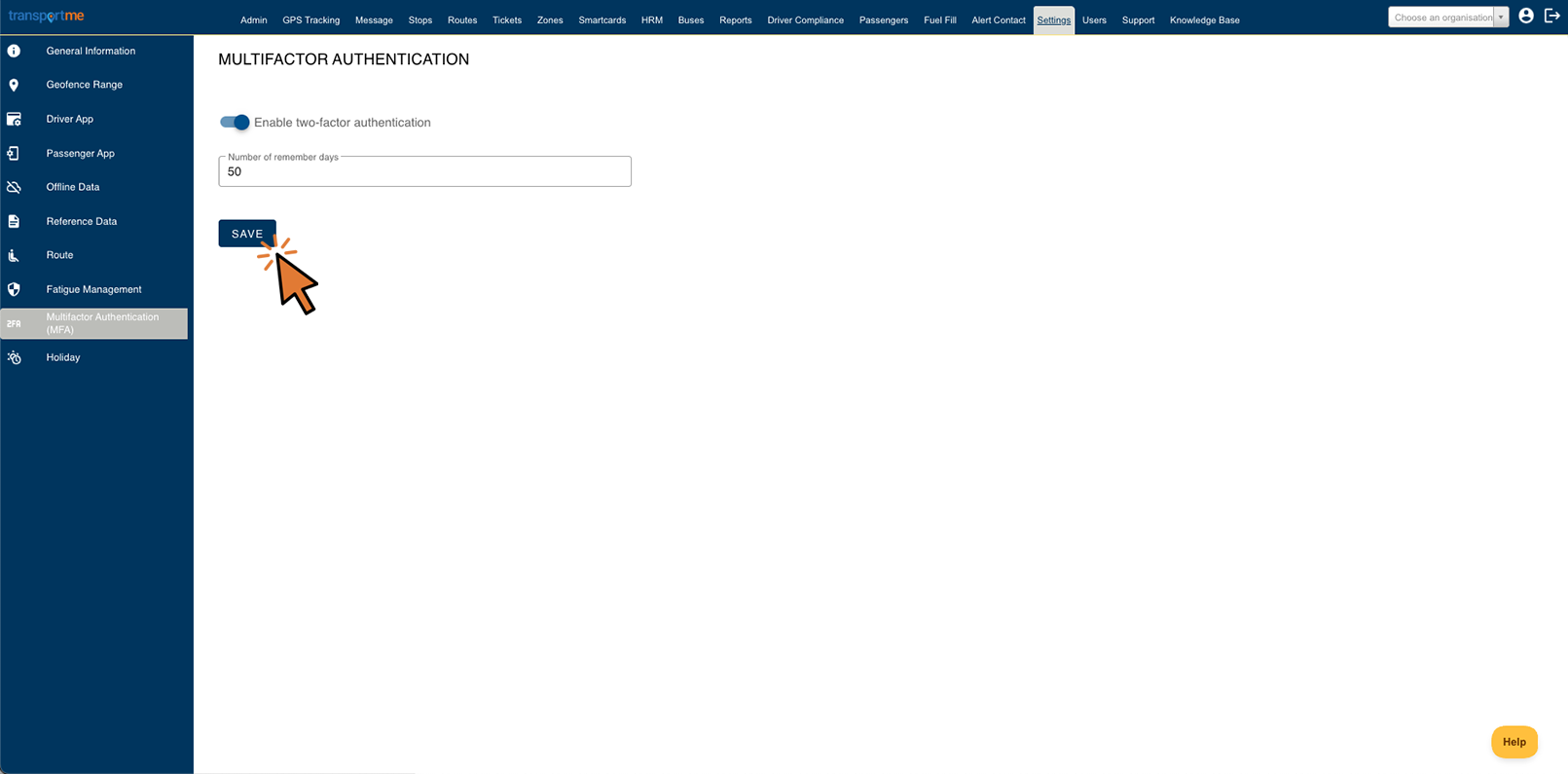 - Select SAVE button to confirm to enable MFA for the operator from the next time login.