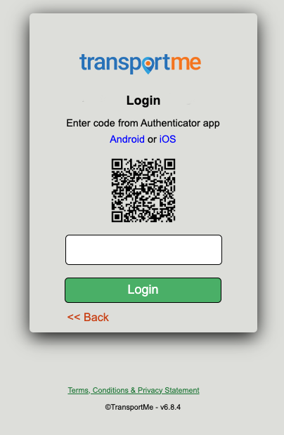 - Transportme™ supports 2-factor authentication: user’s username and password and one-time code from the Authenticator app on a user’s phone.