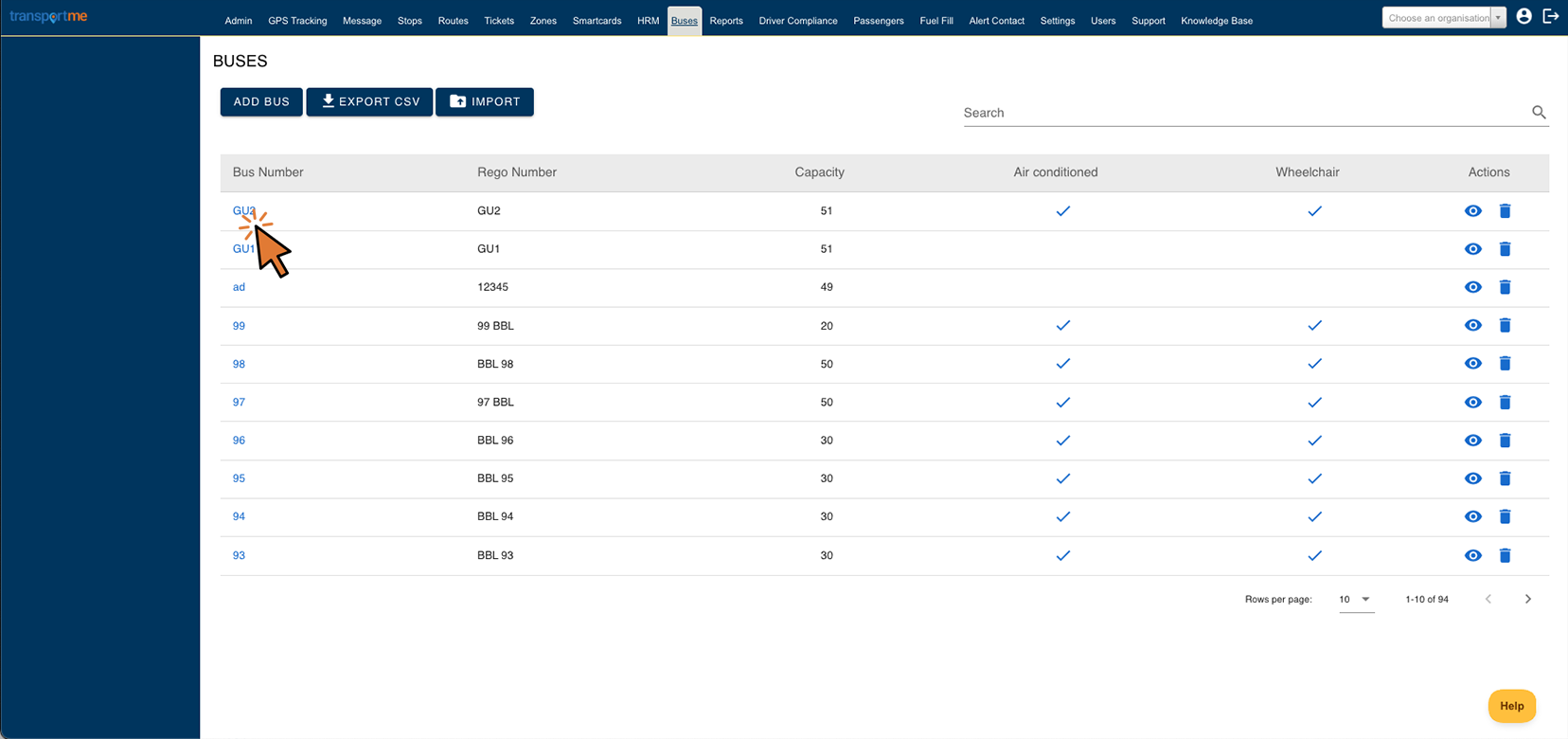- Locate the bus you wanted to update using Search box then select the Bus Number button in the Bus Number column to edit that bus.
