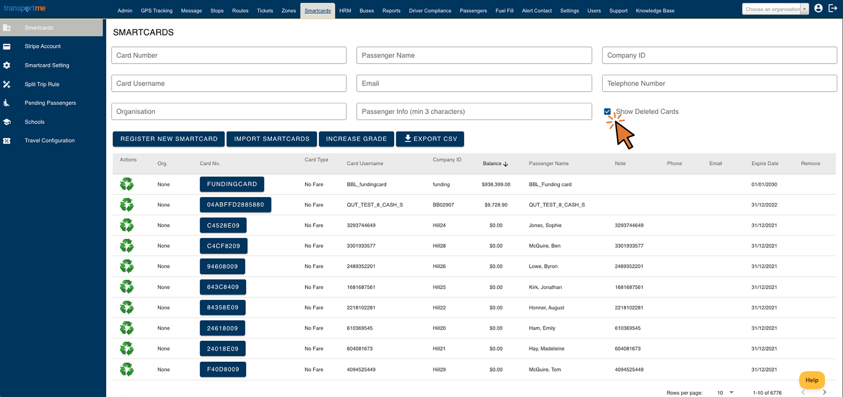 - Use Advanced Search and select Show Deleted Cards checkbox to locate the deleted smartcards.