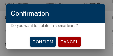 - A confirmation pop-up will be displayed. Choose Confirm to confirm the removal of the smartcard, or select Cancel to retain it.