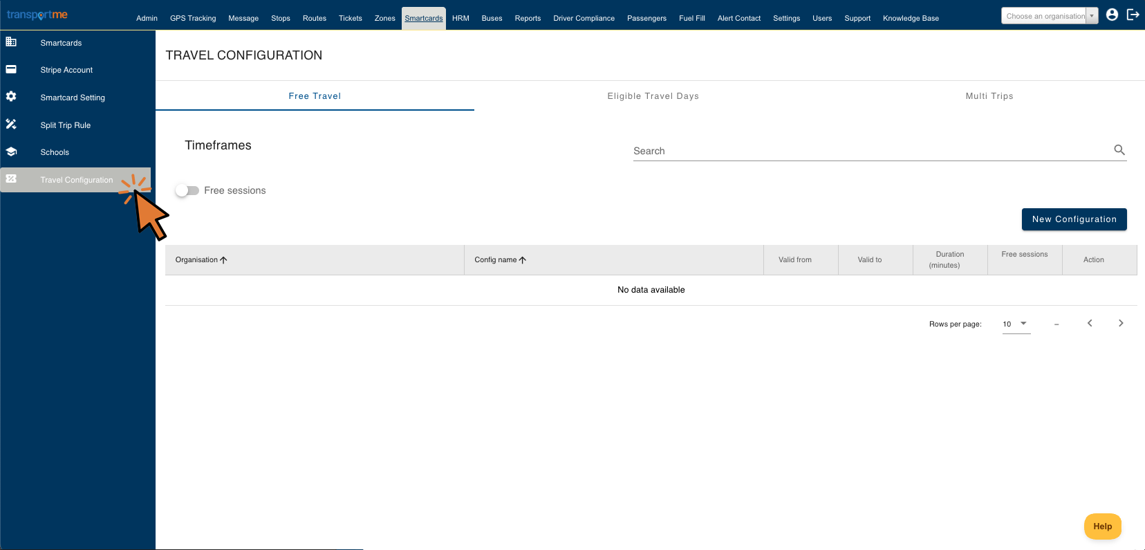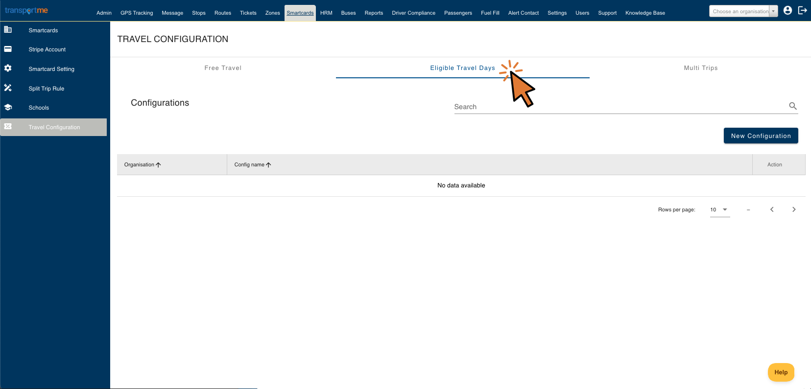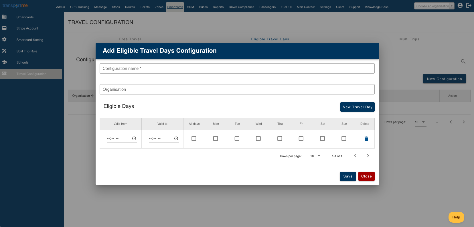 - Choose the configuration name from Eligible Travel Days drop down list in the Smartcard Configuration area.