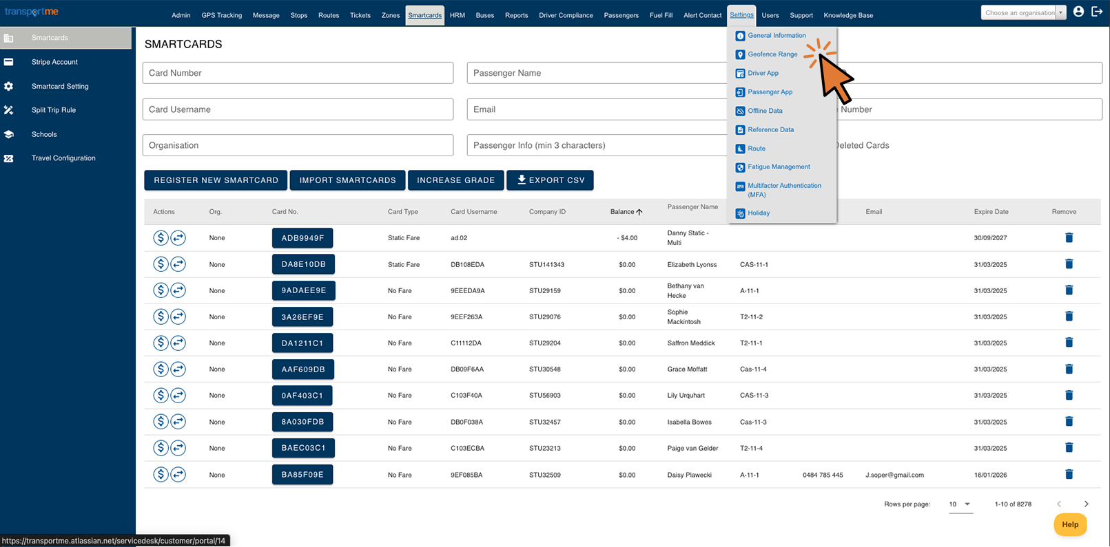 Geofence range for alerting message (meter): when the bus arrives at this geofence of a stop, the alert of upcoming deboarding passengers list at that stop will be shown on the Driver app.