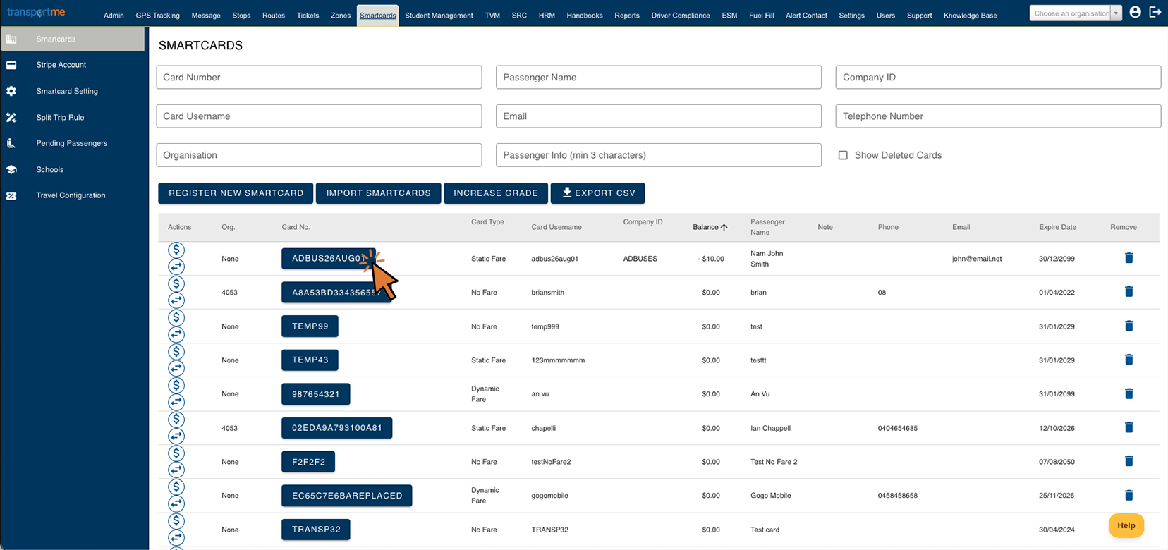 - Example: If a student loses their smartcard, the operator has the option to provide a replacement card. Subsequently, the lost card number can be updated with the new card number. While the smartcard will have a new card number, all of its existing data will remain unchanged.