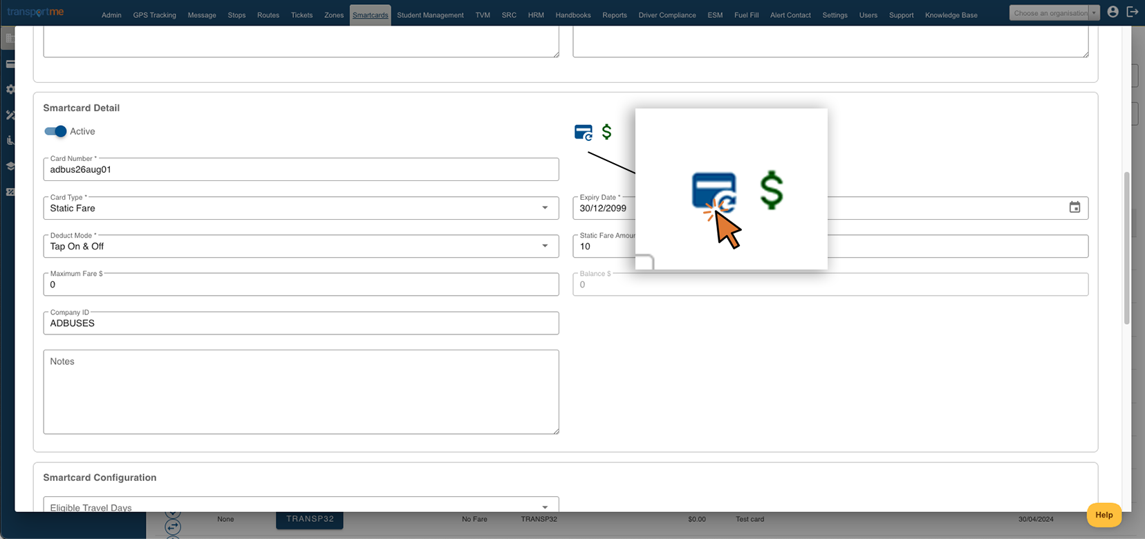 This feature is available if your company has purchased the Smartcards module. This is a standard feature for Queensland School Ticketing (QST). |