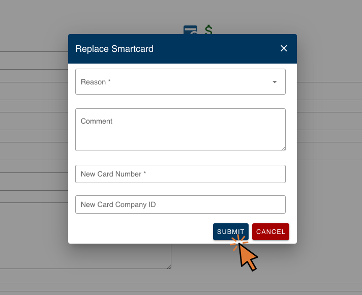 - Select the Replace button to substitute the current smartcard number with the new smartcard number.
